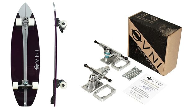 OVNI cortou a discussão criando um surfskate que é mais duro e estável que os demais, mas que também é ágil, e proporciona uma excelente relação entre inclinação do shape e ângulo de curva do equipamento.